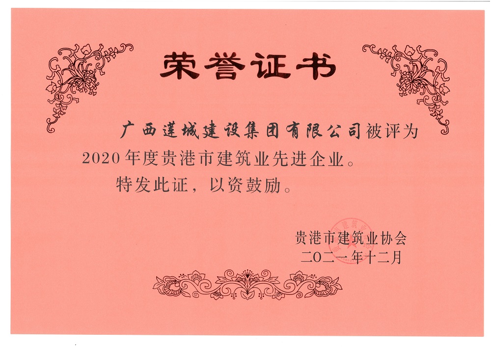 2020年度貴港市建筑業(yè)先進(jìn)企業(yè)