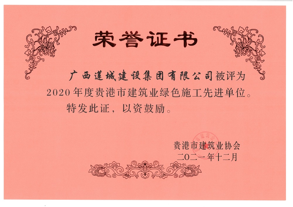 2020年度貴港市建筑業(yè)綠色施工先進(jìn)單位