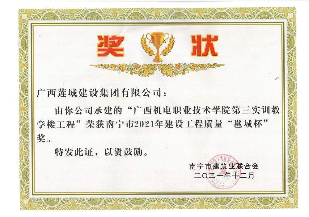 2021年南寧市建設(shè)工程質(zhì)量“邕城杯”廣西機(jī)電職業(yè)技術(shù)學(xué)院第三實(shí)訓(xùn)教學(xué)樓工程