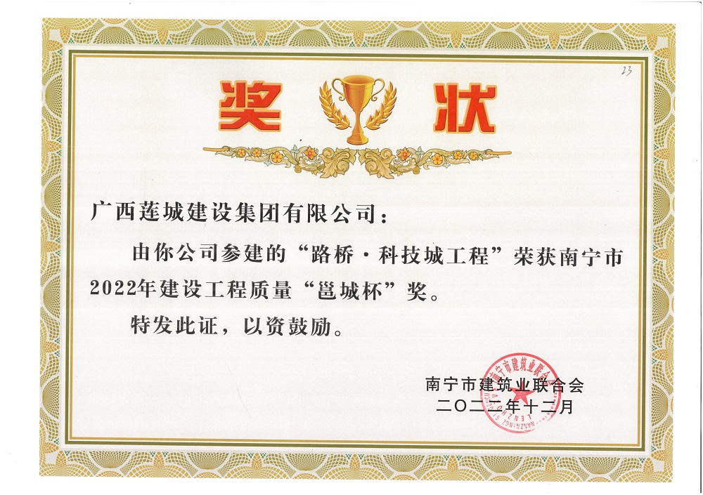 2022年建設工程質量“邕城杯”獎路橋.科技城工程