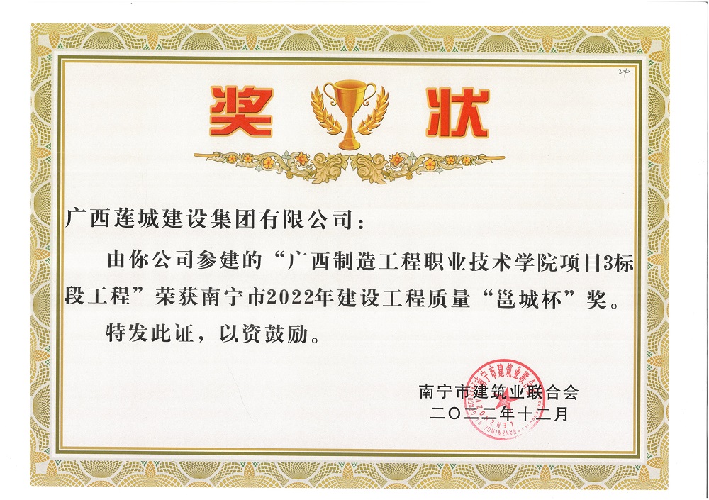 2022年建設工程質量“邕城杯”獎廣西制造工程職業(yè)技術學院項目3標段工程