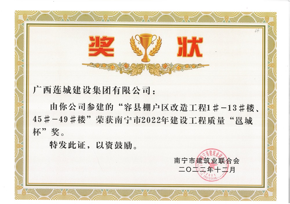 2022年建設工程質量“邕城杯”獎容縣棚戶區(qū)改造工程1#-13#樓、45#-49#樓