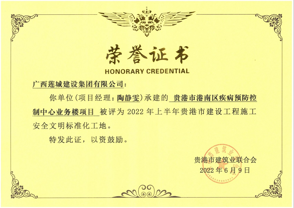2022年上半年貴港市建設工程施工文明標準化工地貴港市港南區(qū)疾病預防控制中心業(yè)務樓項目,項目經理:陶靜雯