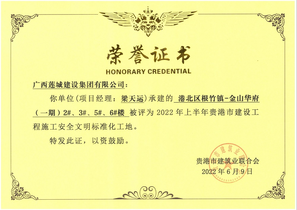 2022年上半年貴港市建設工程施工文明標準化工地港北區(qū)根竹鎮(zhèn)-金山華府(一期)2#、3#、5#、6#樓,項目經理:梁天運