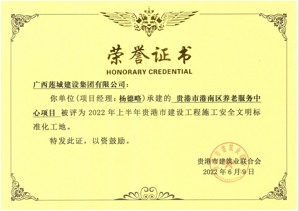 2022年上半年貴港市建設工程施工文明標準化工地貴港市港南區(qū)養(yǎng)老服務中心項目,項目經理:楊德略