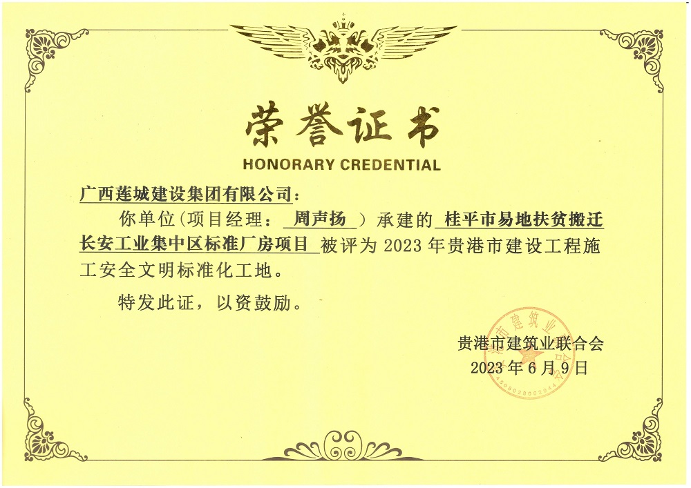 桂平市易地扶貧搬遷長(zhǎng)安工業(yè)集中區(qū)標(biāo)準(zhǔn)廠房項(xiàng)目,項(xiàng)目經(jīng)理:周聲揚(yáng)