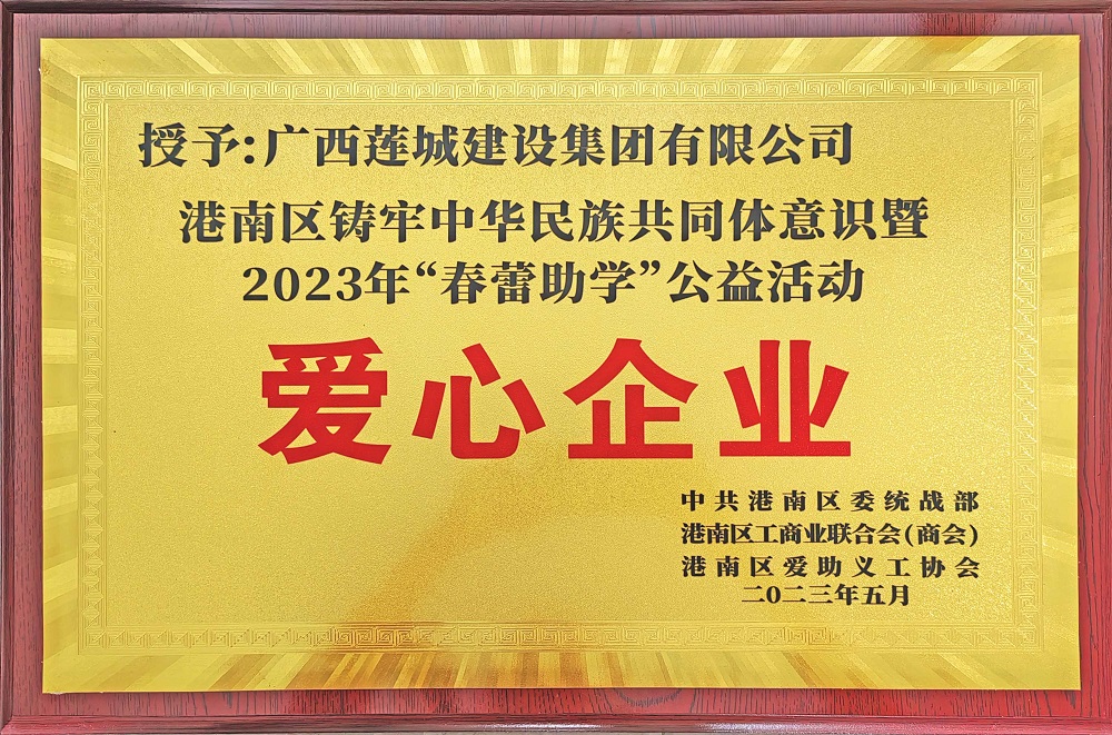2023年度港南區(qū)“希望工程圓夢(mèng)行動(dòng)”活動(dòng)-愛心企業(yè)牌匾