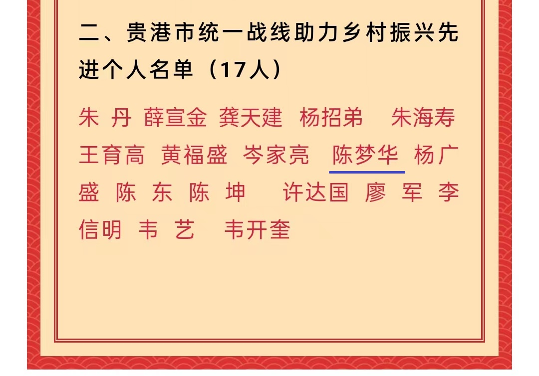 貴港市統(tǒng)一戰(zhàn)線助力鄉(xiāng)村振興先進(jìn)個(gè)人