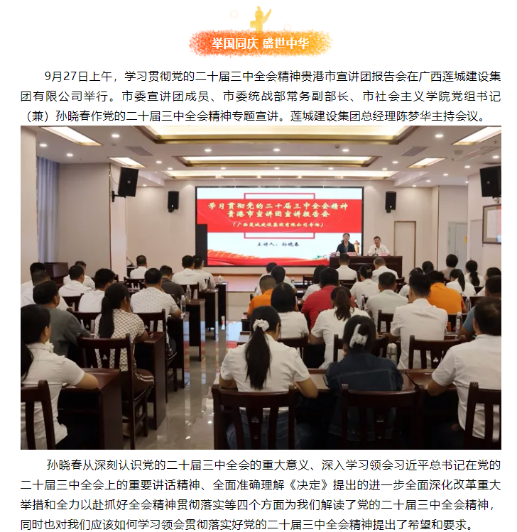 市委宣講團(tuán)到廣西蓮城建設(shè)集團(tuán)宣講黨的二十屆三中全會精神