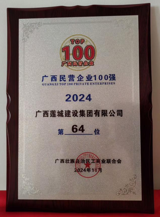 穩(wěn)中有進(jìn)!蓮城建設(shè)集團(tuán)蟬聯(lián)2024廣西民營企業(yè)百強(qiáng)榜單!