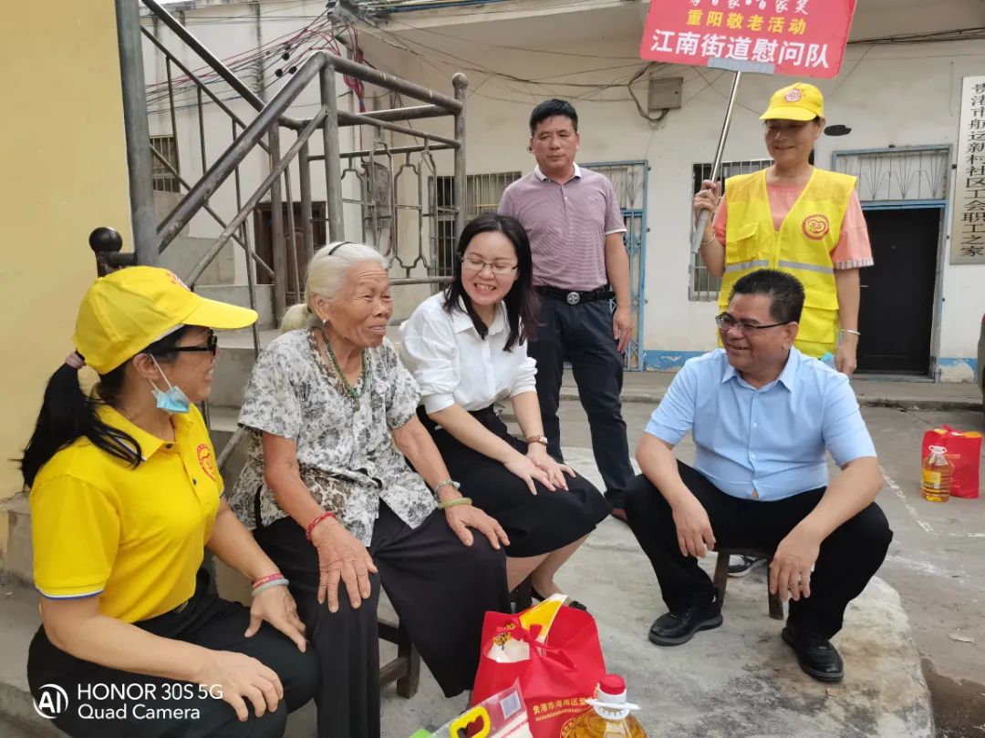 儀式結束后,謝喬勇隨同江南街道慰問隊下鄉(xiāng)慰問貧困老人們。慰問中,他親切地與老人們交談,詳細了解了他們的家庭情況、身體狀況、存在哪些困難,并特意叮囑老人們要注意身體健康。隨后慰問隊向老人們送上了慰問品,老人們開心又感動地說:“感謝黨和政府的關心”。
