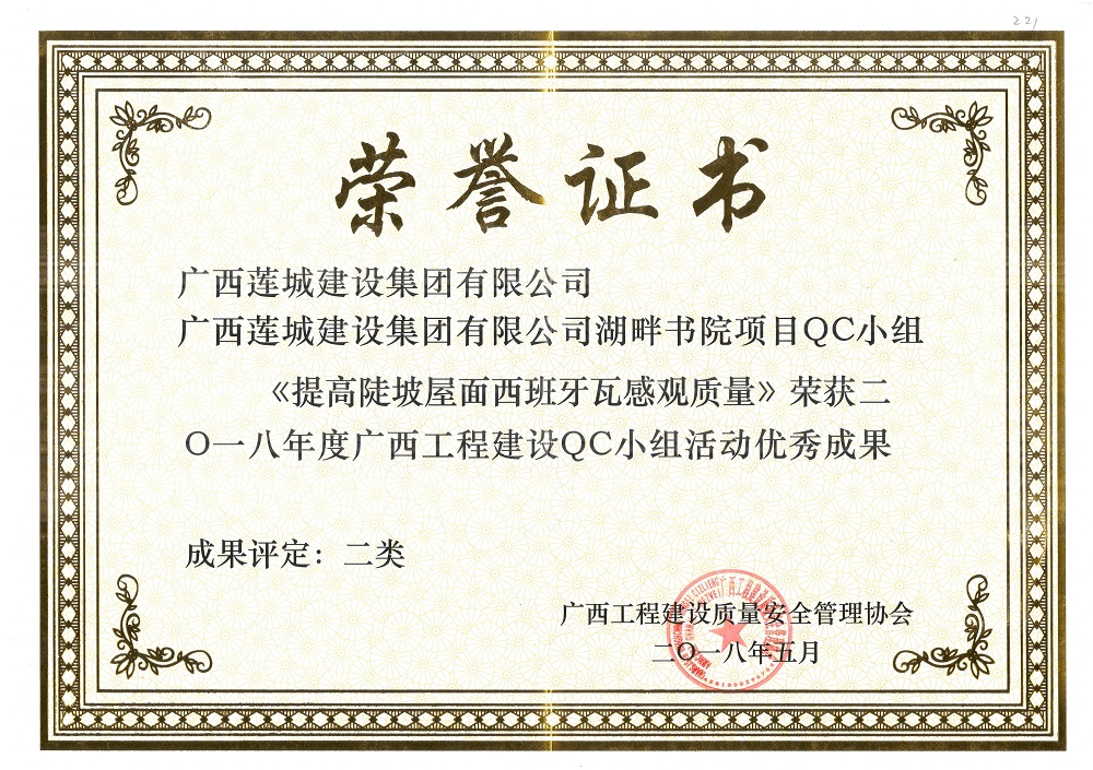 《提高陡坡屋面西班牙瓦感觀質量》湖畔書院項目QC二類優(yōu)秀成果