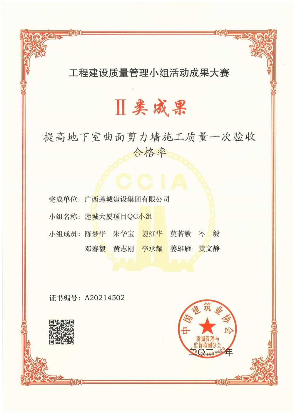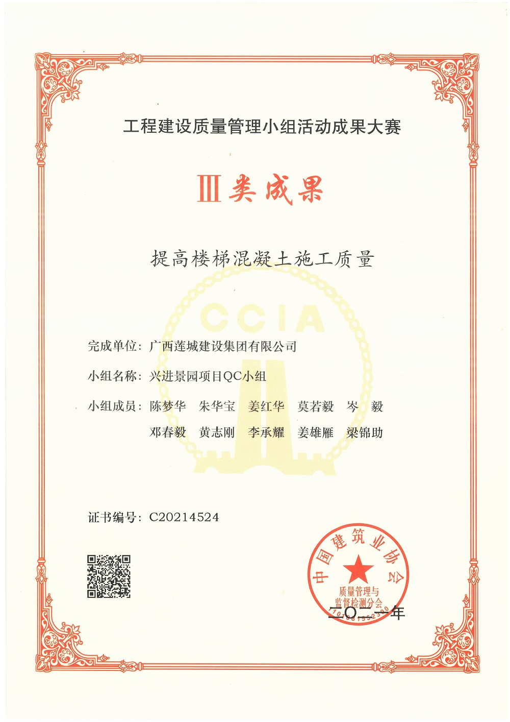 2021年工程建設(shè)質(zhì)量管理小組活動(dòng)成果大賽QC小組